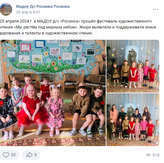 Фестиваль художественного чтения "Мы растём под мирным небом" (Детская библиотека)