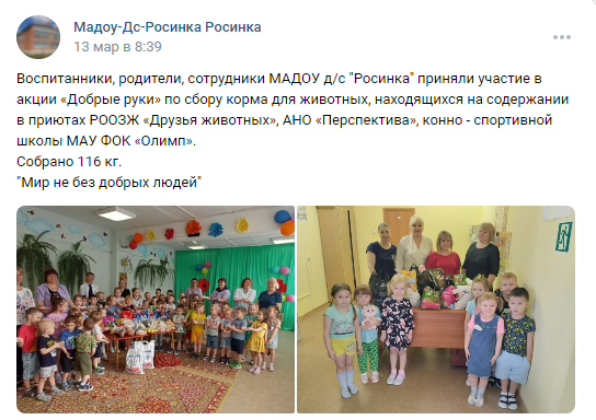 Акция "Добрые руки" (РООЗЖ, АНО "Перспектива", МАУ ФОК "Олимп")